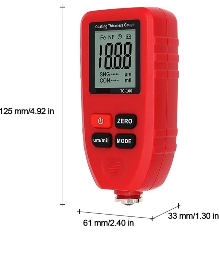ضخامت سنج رنگ TC100 ، دستگاه اندازهگیری ضخامت لایه رنگ خودرو FE/NFE، ابزار دستی رنگ روسی 0.1 میکرون 1300 میکرومتر، مدل TMP1105 (رنگ: خاکستری)
