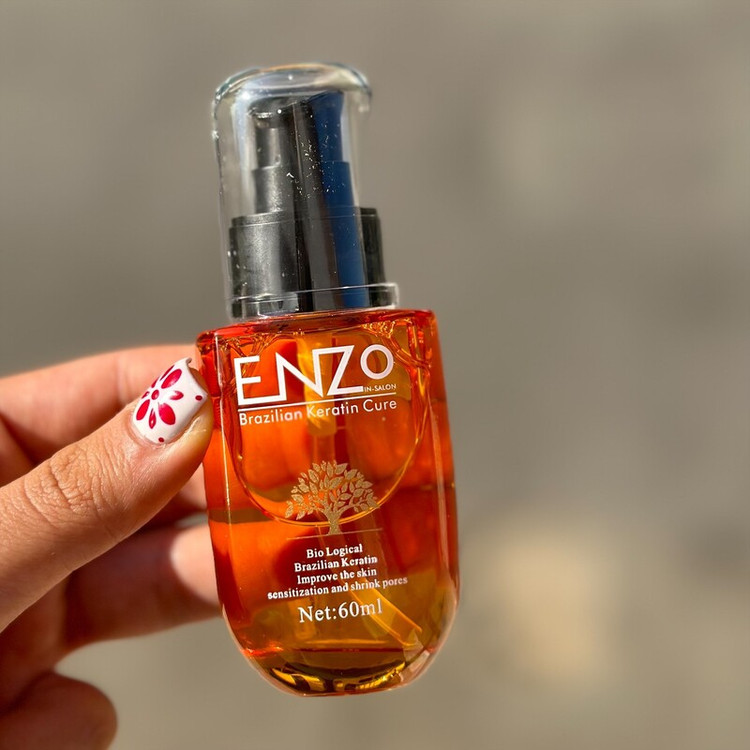 روغن مو آرگان ENZO حاوی کراتین و کلاژن نرم و لطیف کردن موها افزایش درخشندگی و طراوت موها ضدوز و موخوره از بین برنده خشکی و زبری موها افزایش شانه پذیری موها تقویت کننده ساقه مو صاف و ابریشمی کردن موها مناسب برای انواع مو ساخت برزیل حجم: 60 میل