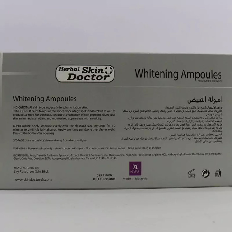 روشن کننده و سفید کننده پوست آبرسان و مرطوب کننده ضد لک و کک و مک افزایش خاصیت ارتجاعی و الاستیسته پوست کاهش دهنده خطوط ریز بهبود بخشیدن به پوست شل و ضعیف حاوی 10 عدد ویال با حجم 3 میلی لیتری