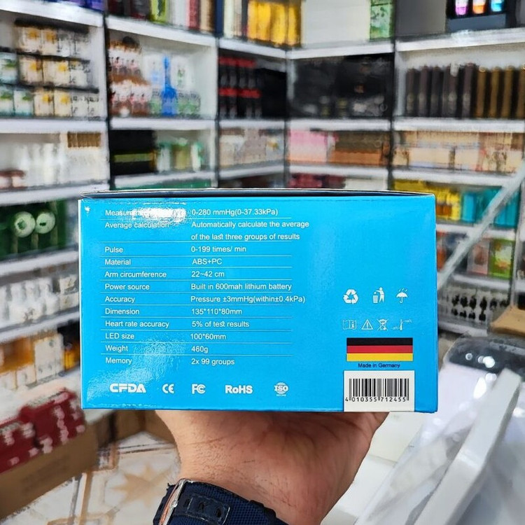 • صفحه نمایش سیاه رنگ XL با خوانایی آسان • دارای فن آوری باد شدن • اندازه گیری تمام اتوماتیک فشار خون و نبض روی بازو • نشانگر خطر LED: طبقه بندی اندازه گیری ها با مقیاس LED رنگی • تشخیص آریتمی • دارای فضای حافظه که هر کدام 2*99 مقدار اندازه گیری شده را در خود ذخیره میکند • میانگین تمام مقادیر اندازه گیری شده در دسترس است • بررسی موقعیت دستگاه • ویژگی های فنی • وزن 19.9کیلوگرم • ابعاد 85× 110×135سانتیمتر • جنس بدنه پلاستيک • رنگ بدنه سیاه • نوع نمایشگر LED • منبع تغذیه شارژی •مدل 2023 •دارای سخنگوی فارسی • کاربرد پزشکی • سایز مناسب مچ/بازو 22~42سانتی متر طوی کل: 57 سانتی متر • استاندارد گواهی استاندارد اروپا CE