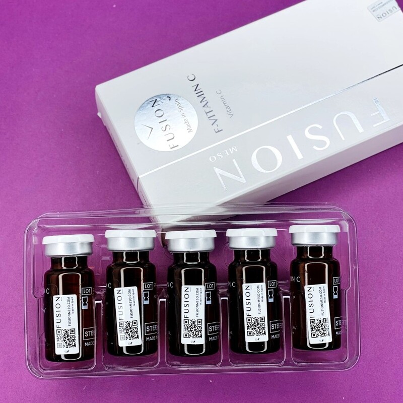 مزو F-VITAMIN C فیوژن لیبل دار درمانی کارآمد در برابر پیری پوست، رادیکال های آزاد، کنترل رنگدانه ها، روشن شدن پوست و ترمیم ماتریکس سلولی پوست است. هر ویال فقط حاوی مواد فعال است، بدون هیچ گونه مواد نگهدارنده یا مواد شیمیایی دیگر.