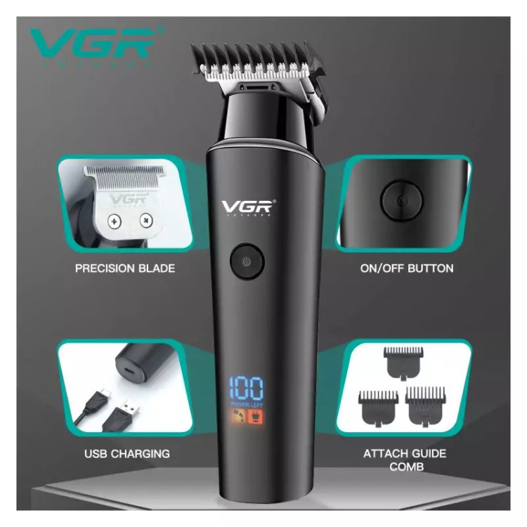 بررسی اجمالی محصول برند VGR مدل 937 بدنه مات و با کیفیت صفحه دیجیتالی درگاه شارژ تایپ سی فست شارژ قابلیت شارژ با فندکی ماشین و پاوربانک صفر زنی دقیق و قوی دارای ست شانه ریز برای اصلاح باتری 2000 میلی آمپری فول شارژ شدن در زمان 4 ساعت قابلیت کار تا 500 دقیقه