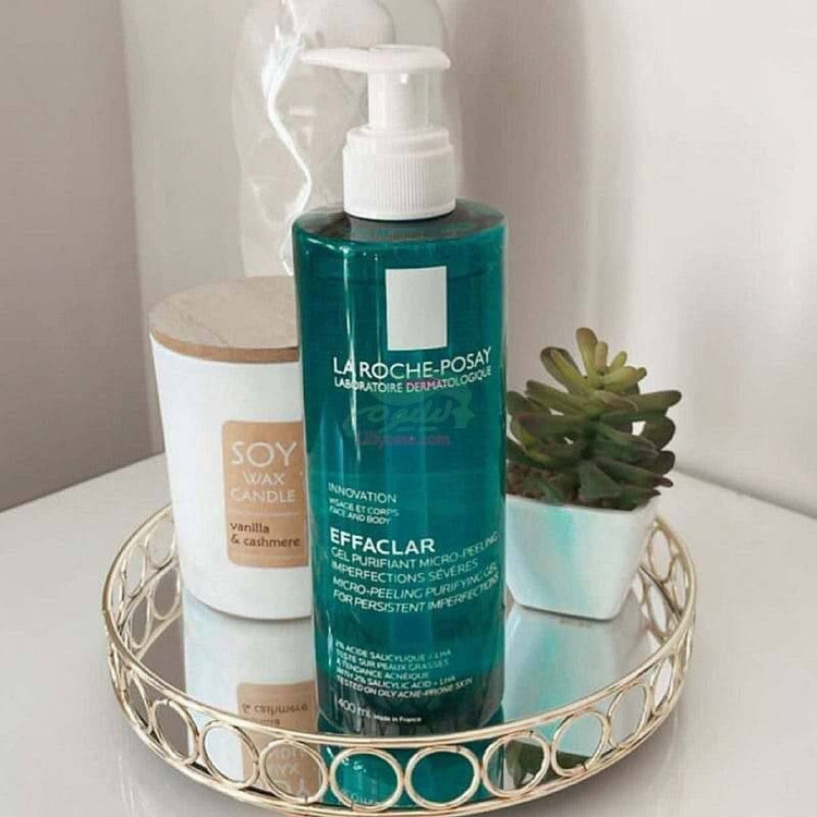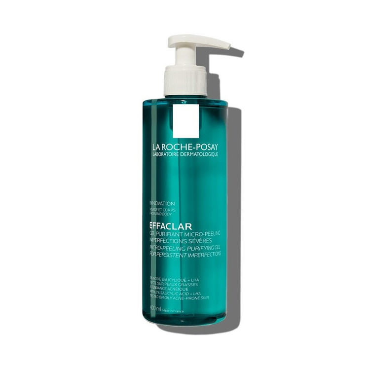 ژل شستشوی میکرو پیلینگ ضد جوش افکلار لاروش پوزای، حجم ۴۰۰ میلی لیتر دارد و ساخت فرانسه میباشد. این محصول دارای خاصیت آنتی باکتریال و لایه برداری ملایم است.